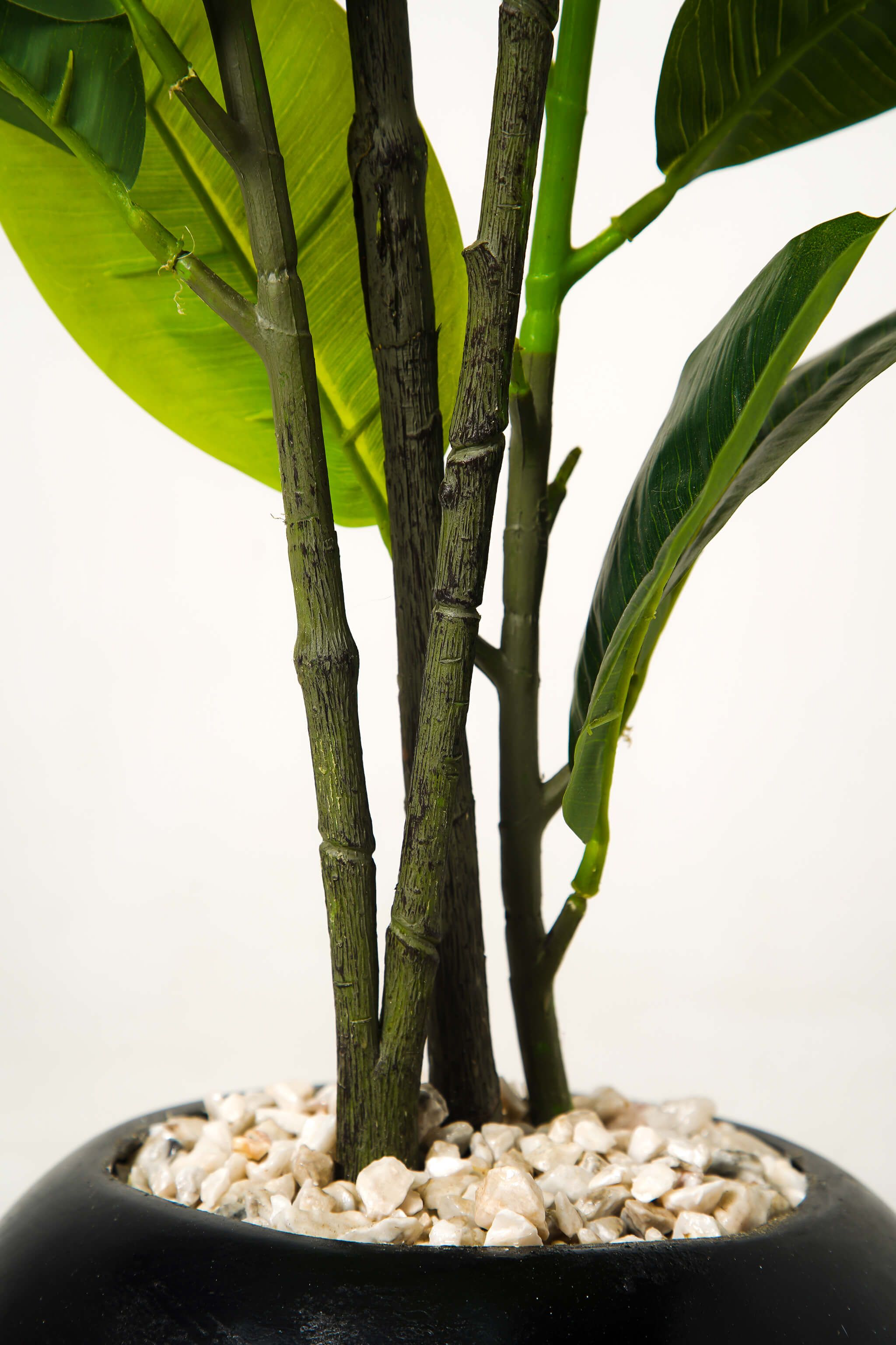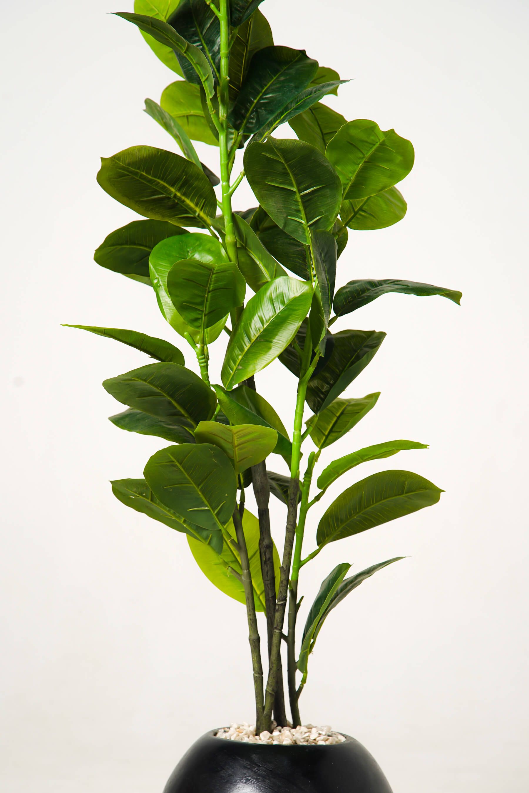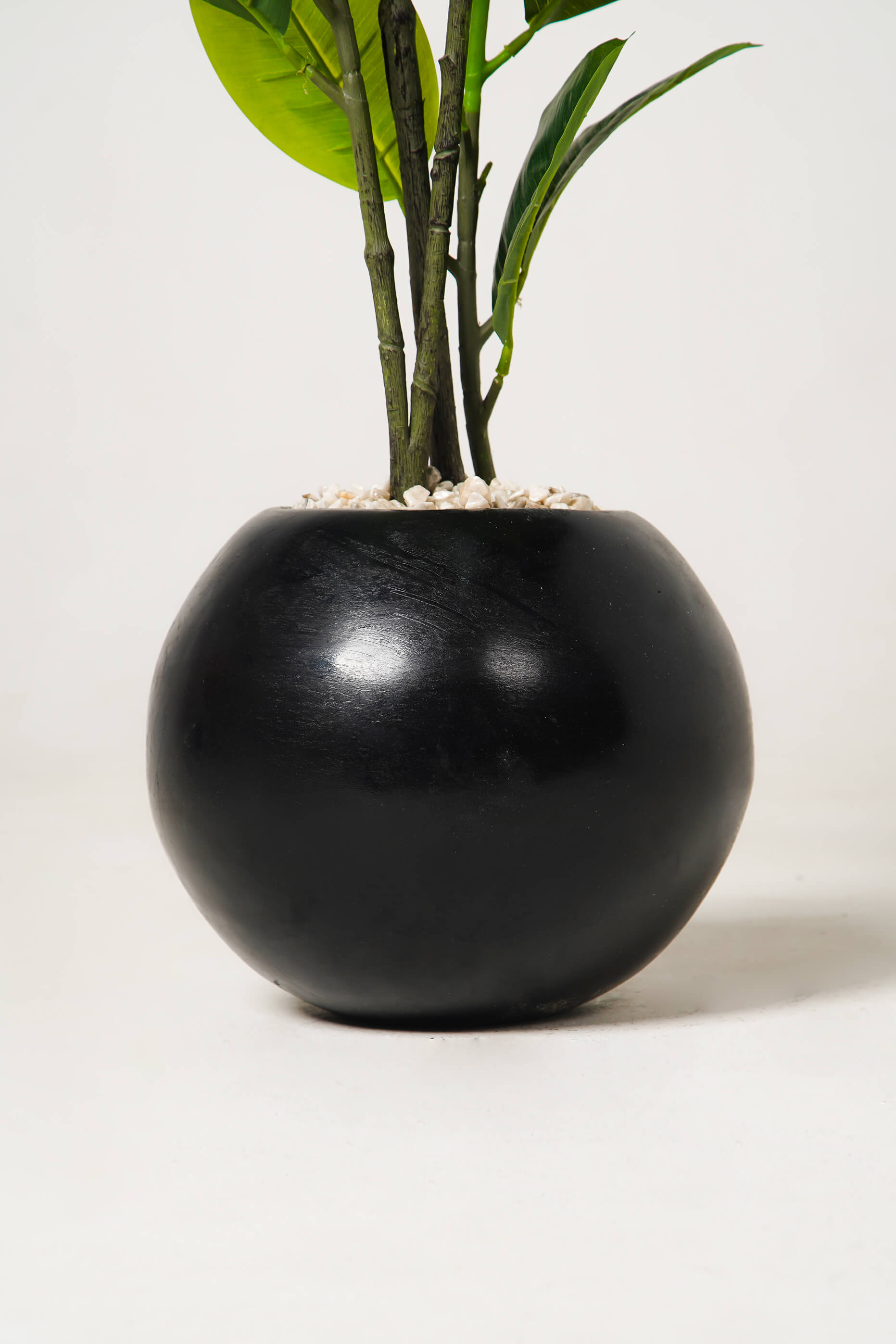 Installée dans un pot sphérique noir ultra chic garni de galets blancs, cette plante décorative devient une pièce maîtresse dans un salon, une entrée ou au pied d’un escalier.
