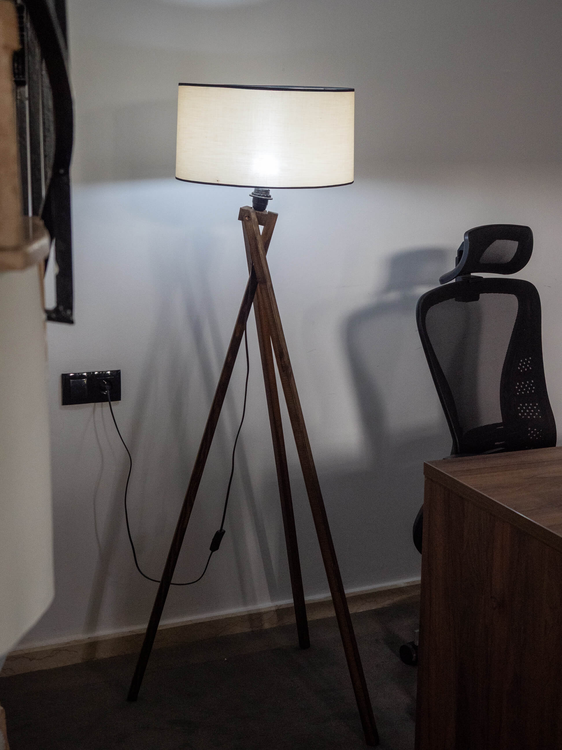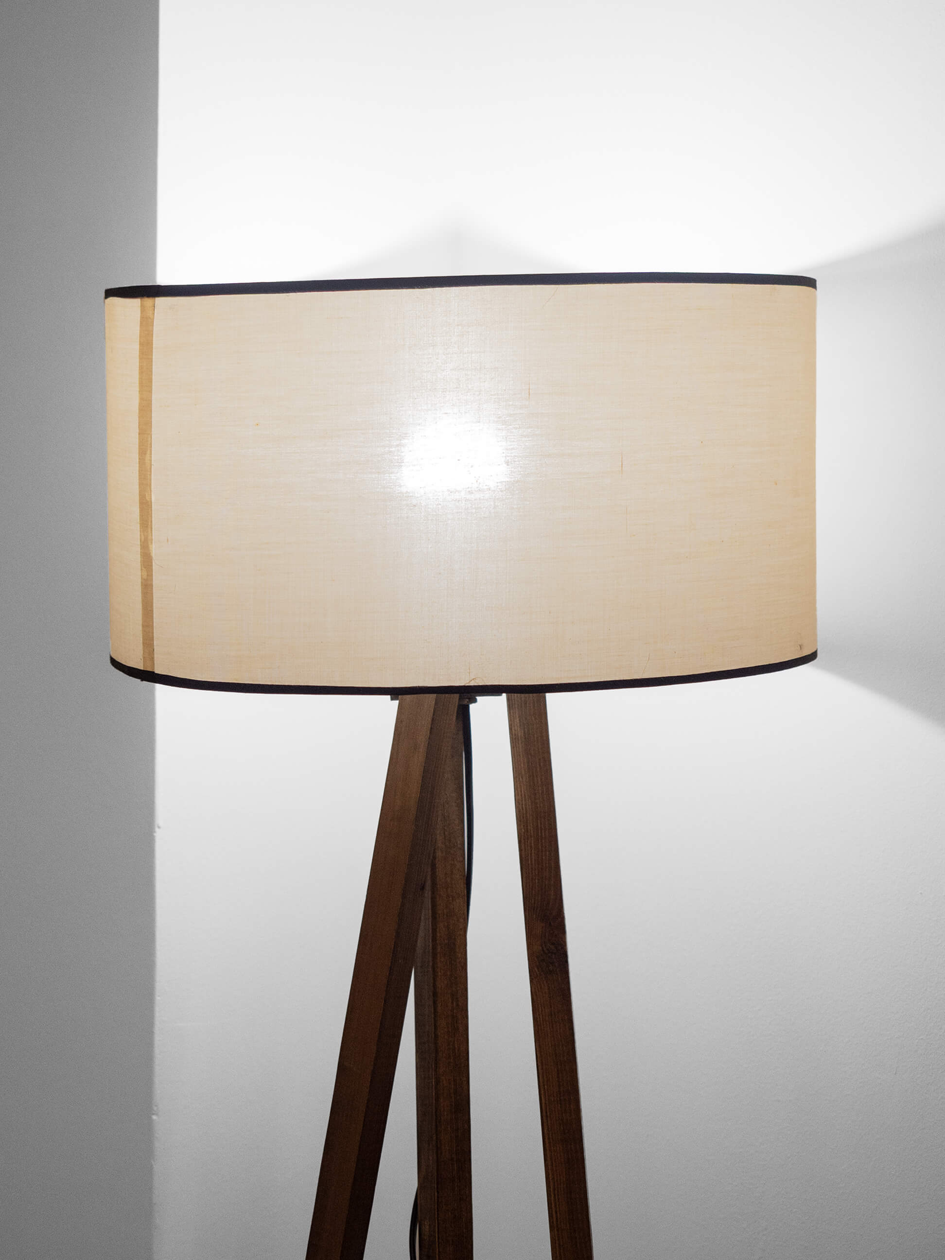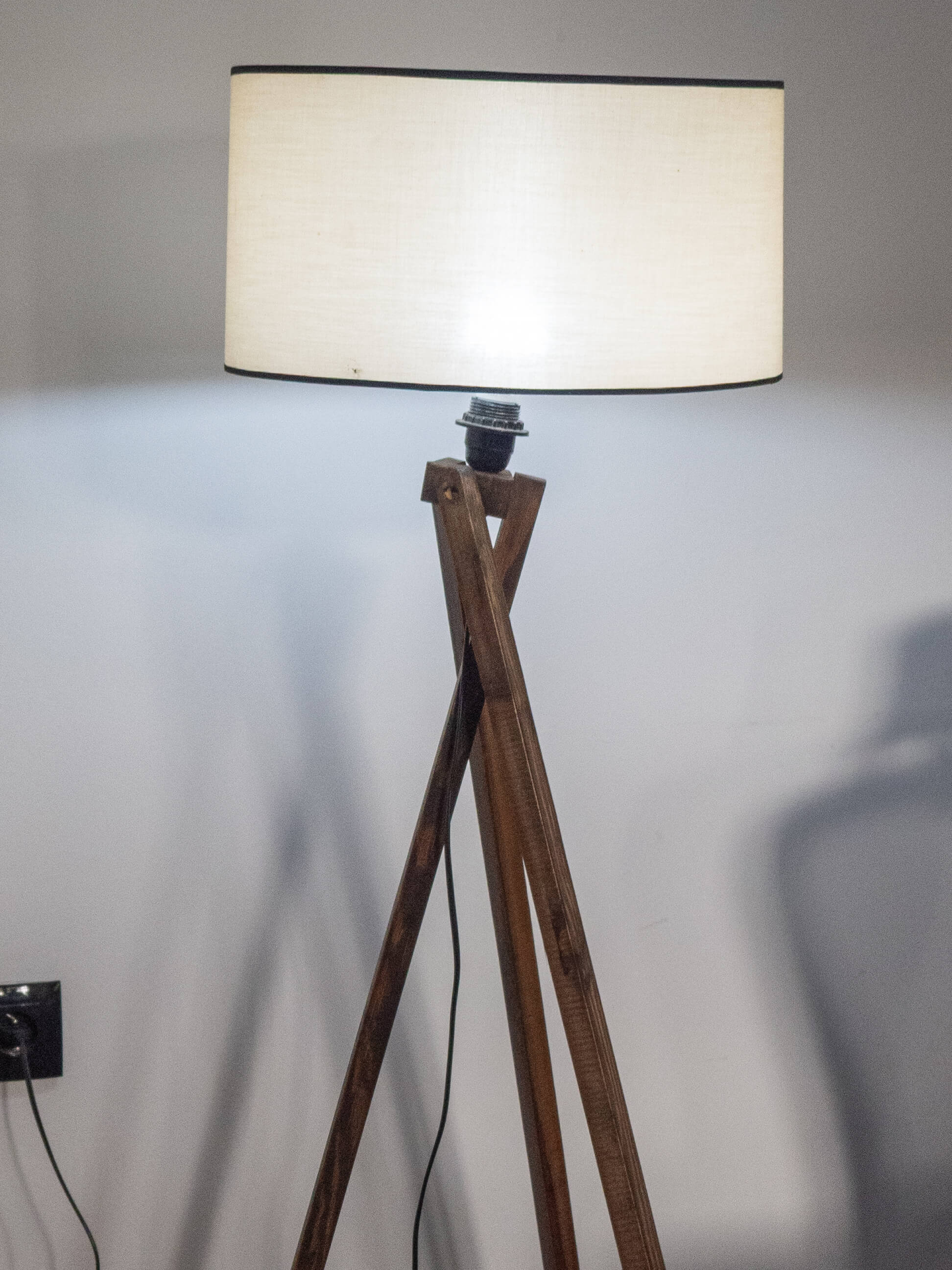 Avec son piètement trépied en bois foncé et son abat-jour cylindrique en tissu clair bordé de noir, cette lampe sur pied incarne l’équilibre parfait entre style moderne et chaleur naturelle. Sa silhouette stable et aérienne ajoute une touche architecturale à n’importe quel espace, tout en diffusant une lumière douce et homogène. Elle est idéale pour les salons, les chambres ou les coins lecture à l’esthétique raffinée.