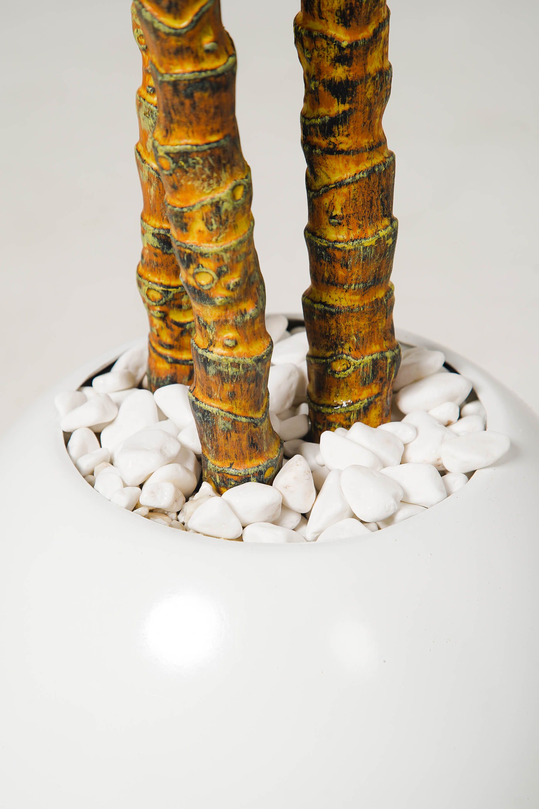 Présentée dans un pot blanc minimaliste posé sur un support doré raffiné, elle crée un contraste chic et sophistiqué, parfait pour sublimer un salon, une entrée ou un bureau. Son design réaliste apporte la beauté du végétal sans aucun entretien.